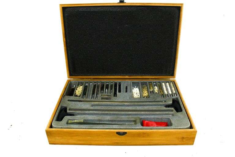 LOT 614 - Red Head Gun Cleaning Supplies Kit in Wooden Box.