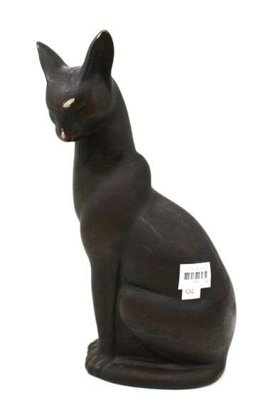 LOT 508 - Art Deco Egyptian Revival Bronze Cat Figurine Statuette - 15 x 5