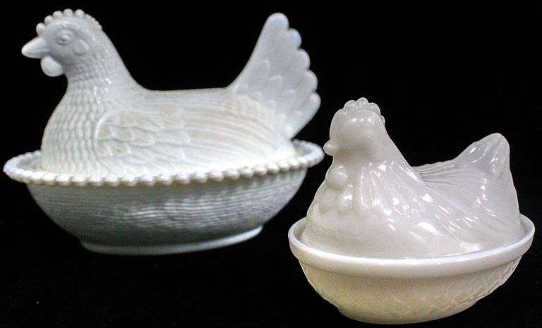 LOT 639 - Milk Glass Chicken in the Nest Covered Trinket Bowls - Vintage