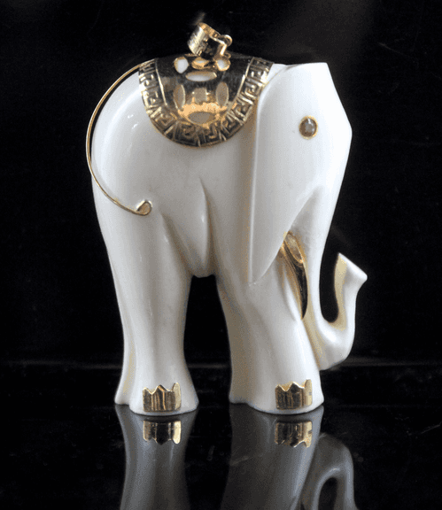 LOT 325 - 14 KT Gold Elephant Pendant with a Ruby (Tested) Eye. Beautifully Made. 2". MARKED 14KT 585.