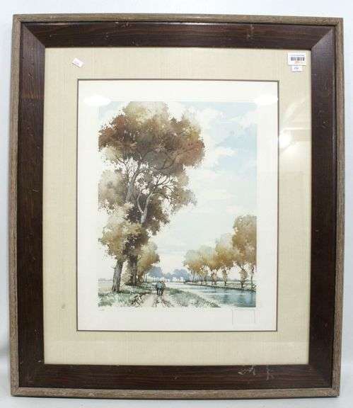 Signed and Numbered ../350 Walk Along a Canal Landscape by Roger Hebbelinck (Belgian, 1912-1987) - 26 x 30