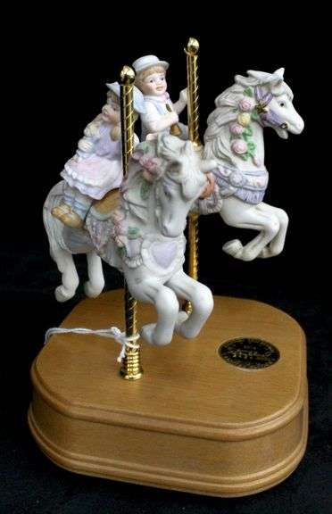 Carousel Music Box from the Westland Collection c. 1992 - features two horses that go up and down as music plays "Memories" - Limited Edition #2024/9000 - Description courtesy of the consignor.