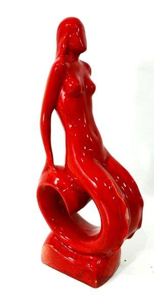 Nude Woman Art Sculpture - Natural Freeform Bright Red Orange Glazed - Sticker Lable - Fountains, Falls of Fantasies 14x6