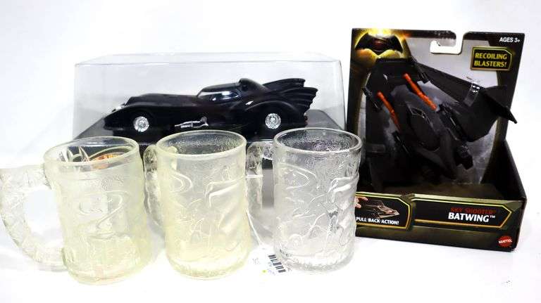 Batman Movie Memorabilia & Toys - Imprinted Mugs, Batwing Toy, Bat Mobile Model Toy