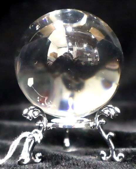 Crystal Sphere on a Silver Metal Stand. 2 1/2 " dia.
