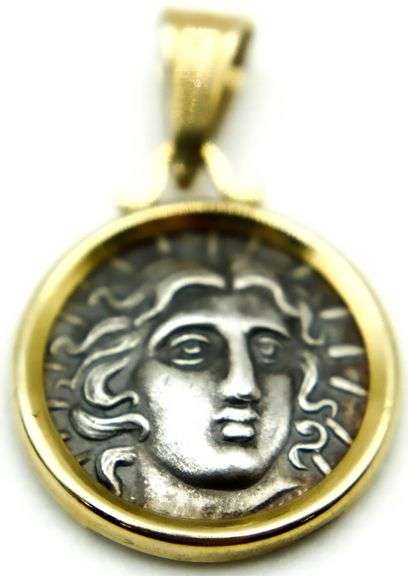 LOT 75 - 14 KT Gold Pendant Frame for a Sterling Silver Poaion Coin. (3.4 gm t.wt)