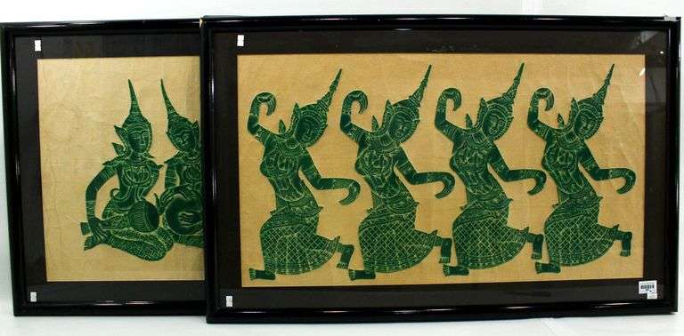 Thailand Mid Century Temple Dancers - 24 x 38 each