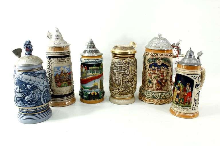Stein Collection: Elf Festivities , The Gold Rush Stein Avon 1987 Handcrafted in Brazil & More.