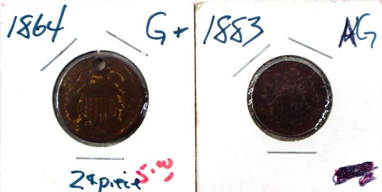 LOT 64 - 1865 US 2 cent and 1883 5 cent Nickel , 2 items