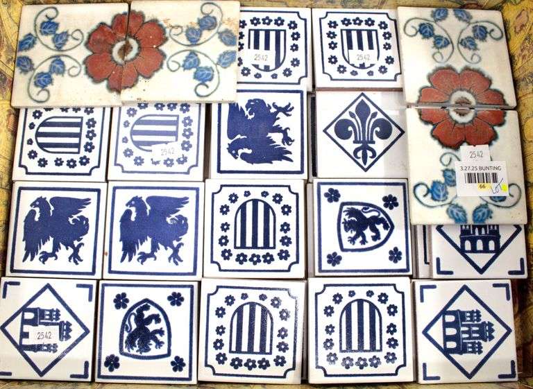LOT 66 - Tiles - Phoenix , Fleur de lis , Castle , Flowers