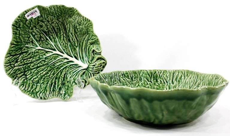 LOT 108 - Vintage Bordallo Pinheiro Caldas da Rainha Made in Portugal Green Cabbage Ceramic Bowls - Tableware