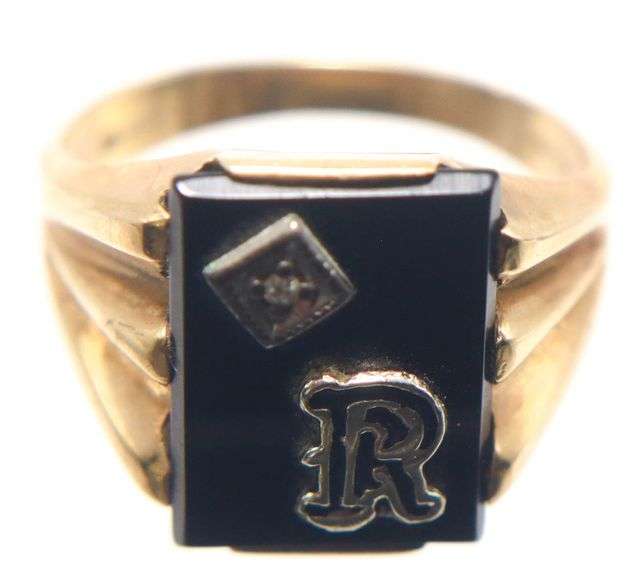 10 KT Gold Signet Ring, accented with a Diamond (tested), size 10. (5.86 gm t.wt)
