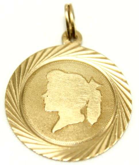 14 KT Gold Pendant / Charm, inscribed, girl with a pony tail. (1.35 gm)