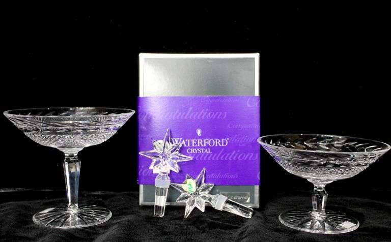 Waterford Crystal "Congratulation" Bottle Stoppers (Pair) - and - Waterford Crystal "Glandore" Compotes (Pair)