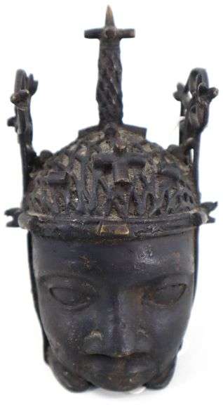 LOT 123 - Kingdom of Benin West African Bronze Bust Sculpture Figurine - 6 x 4