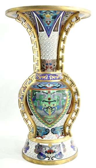 LOT 63 - Vintage 1949ish Chinese Cloisonne Archaistic "Gu" Vase - 10"