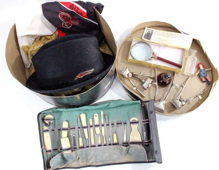 Antique 1920s French Ivory Brand Manicure Set - and - Vintage Wool Hat with Feather by Bailey Size 7⅝ - and - Vintage Hair Clippers and Razor - and - More