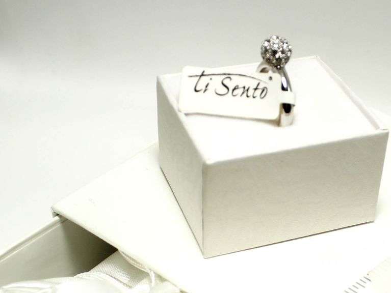 ti sento Milano Sterling Silver Ring, disco ball setting, size 7, original packaging and box.
