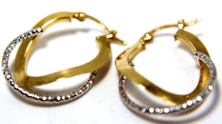 LOT 5 - 18 KT 750 Gold double elongated hoop Earrings. (2.62 gm)