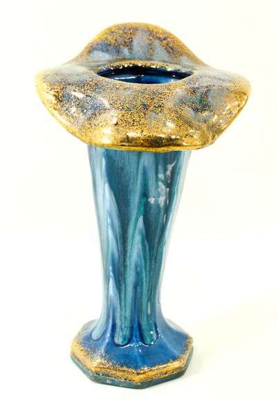 LOT 24 - Mid-20th Century Azure Luster and Gold Glaze Ceramic Vase - 10"