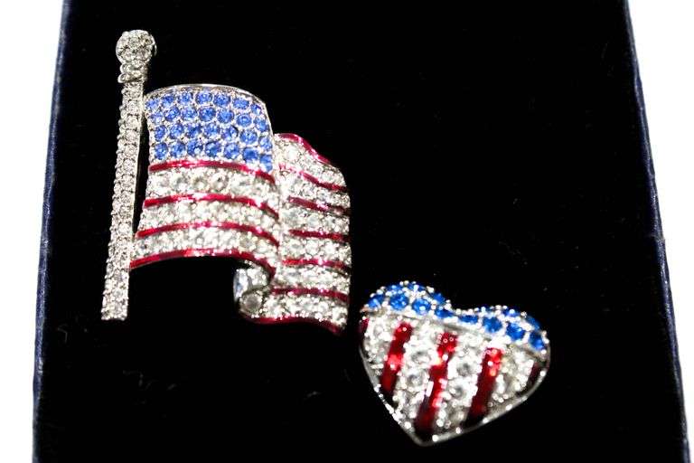 LOT 65 - Swarovski 4th of July pins, (what a great way to show the red/white/and blue!