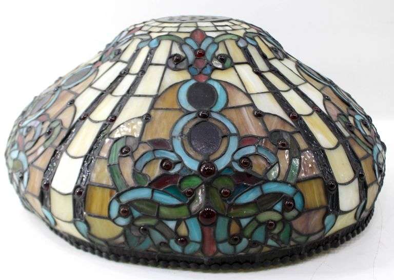 LOT 58 - Vintage Tiffany-Style Stained Glass Lamp Shade - - 9 x 20