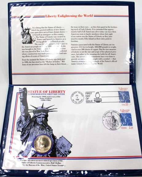 LOT 659 - Postal Commemorative society , Statue of Liberty first day cover , includes half dollar