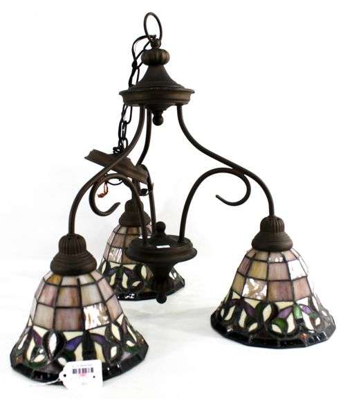 LOT 103 - Stained Glass Shade Three Light Chandelier - 21 x 21 x 21