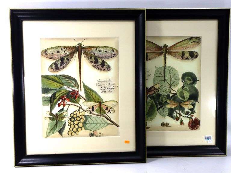 "Dragonflies" two vintage prints, framed 28" x 24"
