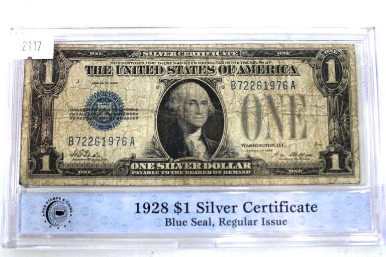 1928 $1 , blue seal , silver Certificate , PCS Authenticated