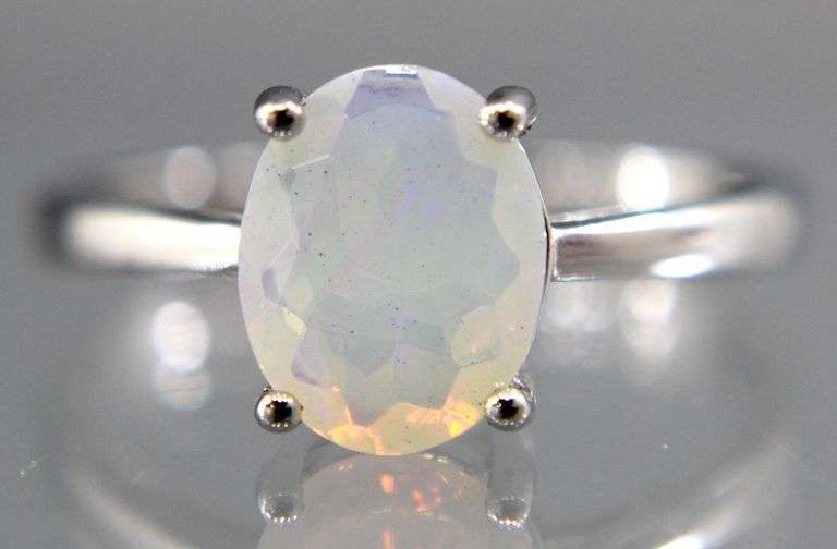 LOT 590 - Opal and Sterling Silver Ring, size 7.