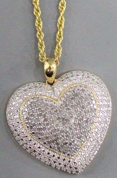 LOT 505 - Diamond (tested) heart Pendant Necklace of gold over brass, 2.00 cttw, 24"