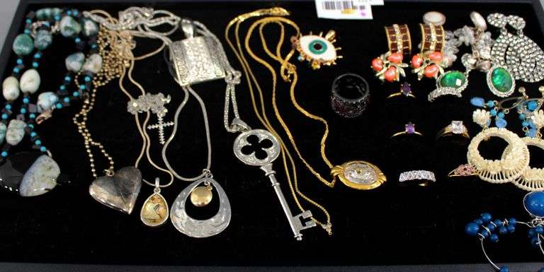 LOT 370 - Clip Earrings; Evil Eye Pendant; Ring Collection