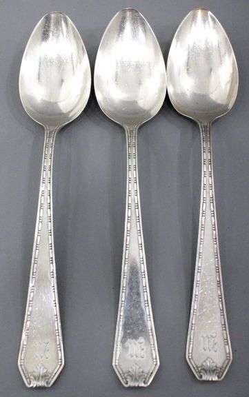 LOT 339 - Sterling Pat 1910 Antique Silver Serving Spoons Monogrammed "M" 152G