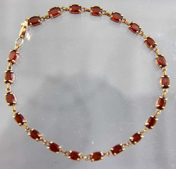 10 KT Gold tennis Bracelet with Garnets, (tested), 7". 5.1g