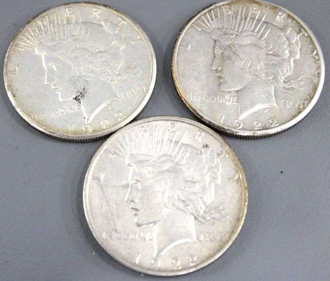 1922 "S" ( 2x ) and 1922 "P" Peace silver dollars , 3 items