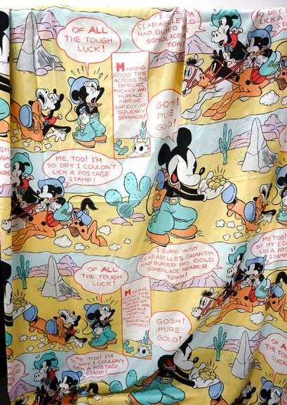 LOT 241 - Vintage Mickey Mouse Gold Rush Horace Cowboy Sheriff Bedding - Flat Sheet. Size Twin