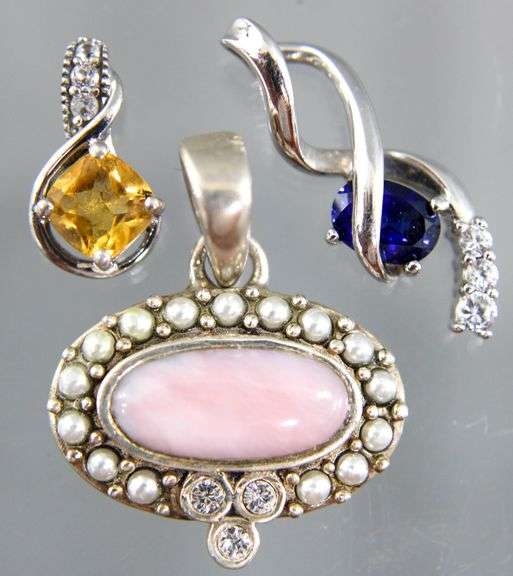 Sapphire, Citrine (both tested), Genuine Seed Pearl, and Sterling Silver Pendants