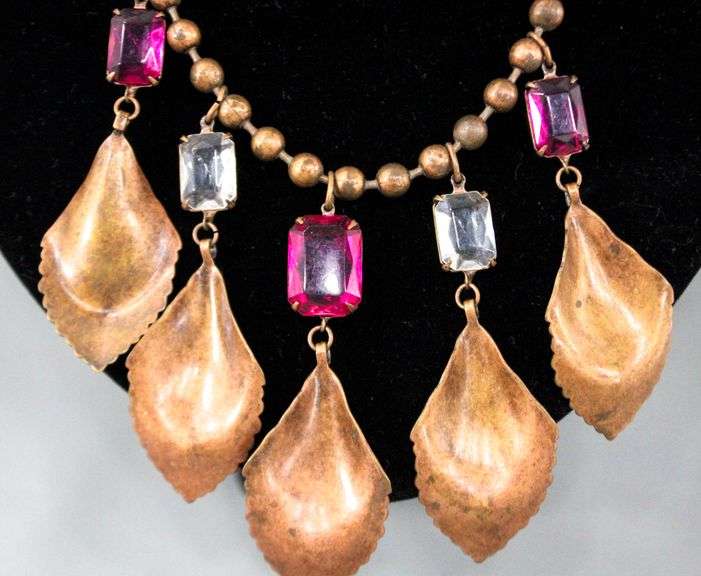 LOT 77 - Vintage Copper Necklace with Drop Leaf Charms.