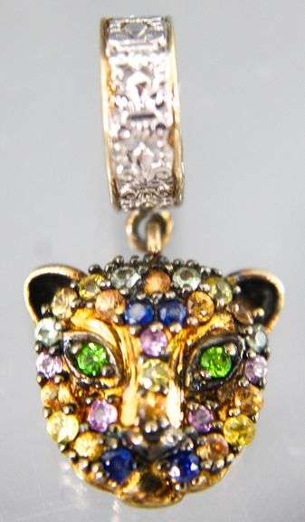 Michael Valitutti Topaz, Citrine, Peridot, Garnet (all tested), and Sterling Silver Jaguar / Panther Bracelet / Necklace Charm / Pendant.