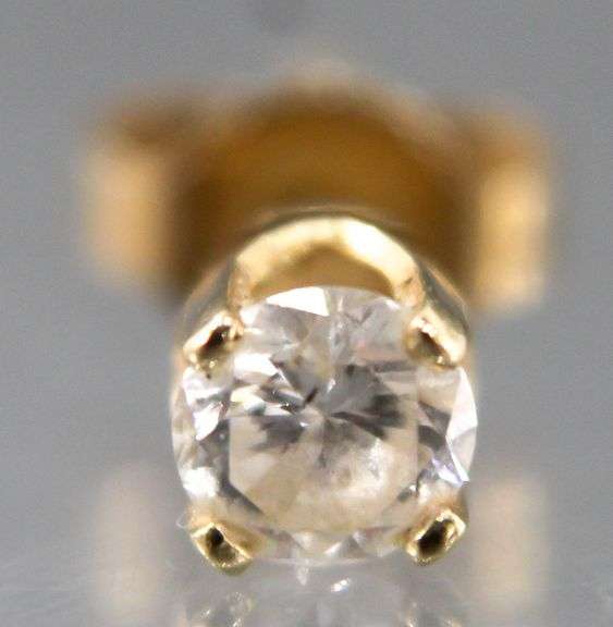 LOT 52 - Diamond (1/4 of a Carat, tested) and 14KT Gold Single Earring. 0.5g, 3.8x3.8x2.6