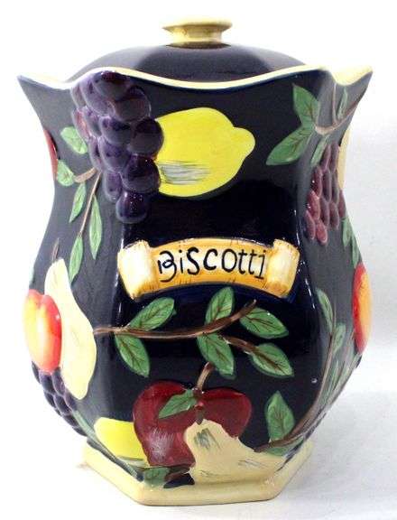 LOT 745 - Biscotti Ceramic Canister with Lid Hand Painted for Nonni's - 10"