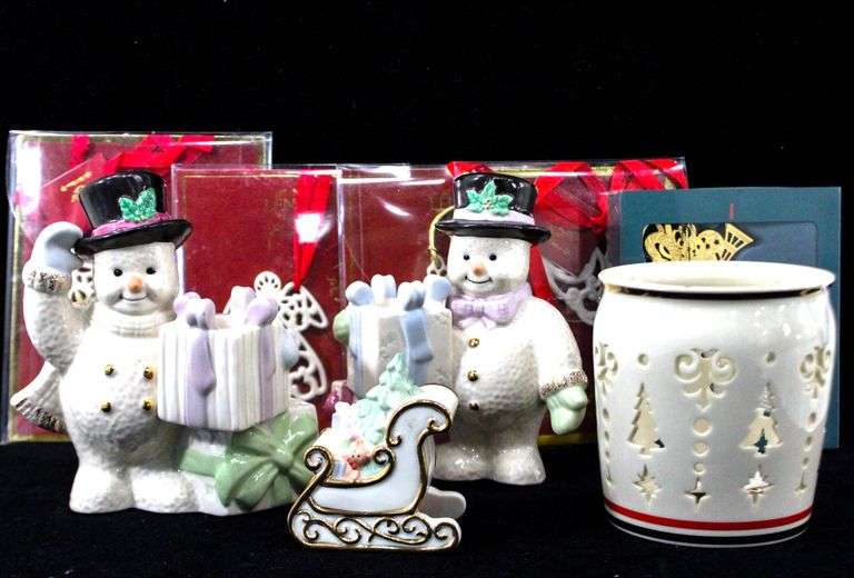 LOT 739 - Lenox Hosting the Holidays Candle Holders and Ornaments