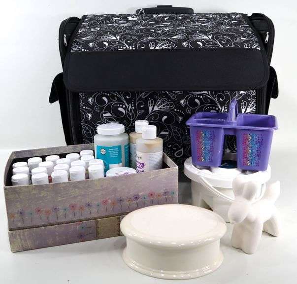 LOT 669 - Rolling Craft Bag with paints craft items and more