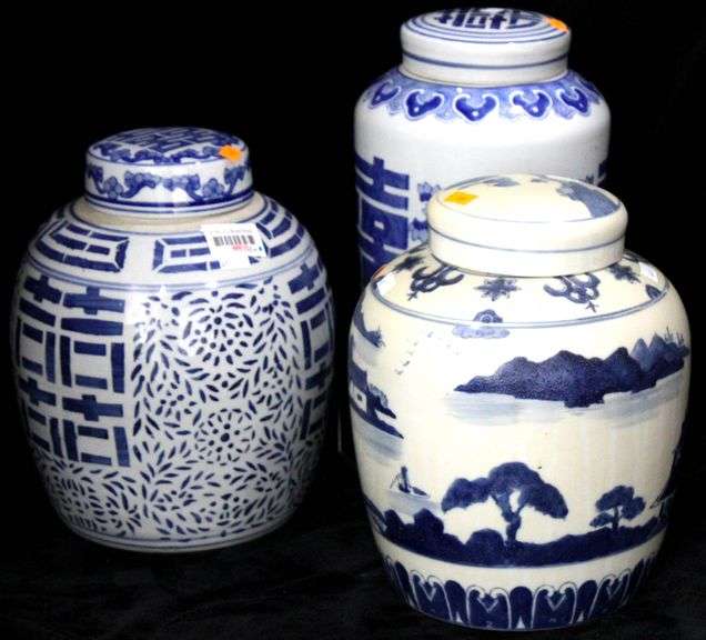 LOT 668 - Blue on White Chinoiserie Ceramic Ginger Jars