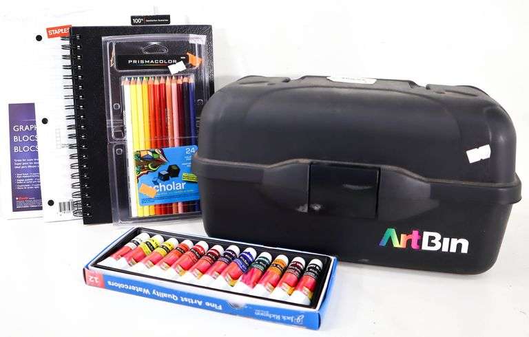 LOT 664 - Watercolor Paints with Art Bin, Color Pencils and Graph Paper
