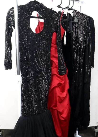 LOT 633 - Sequins, Beads, and Bling Evening Wear - Includes David's Bridal Size 10 and Other