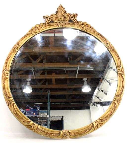 LOT 624 - Ornate Vintage Gilt Round Wall Mirror