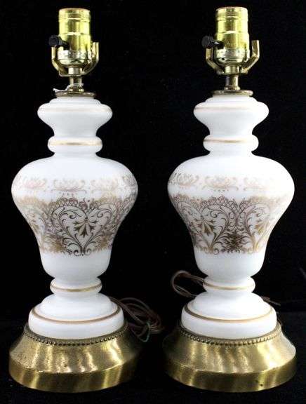 LOT 614 - Opaline Glass Made in France Table Lamps - Pair - 15" each