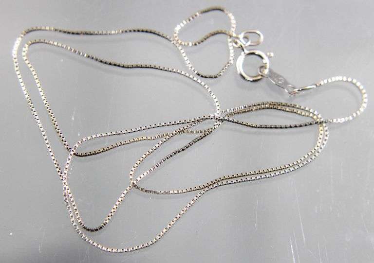 LOT 470 - 14 KT white Gold box chain Necklace, 18". (0.9 gm)